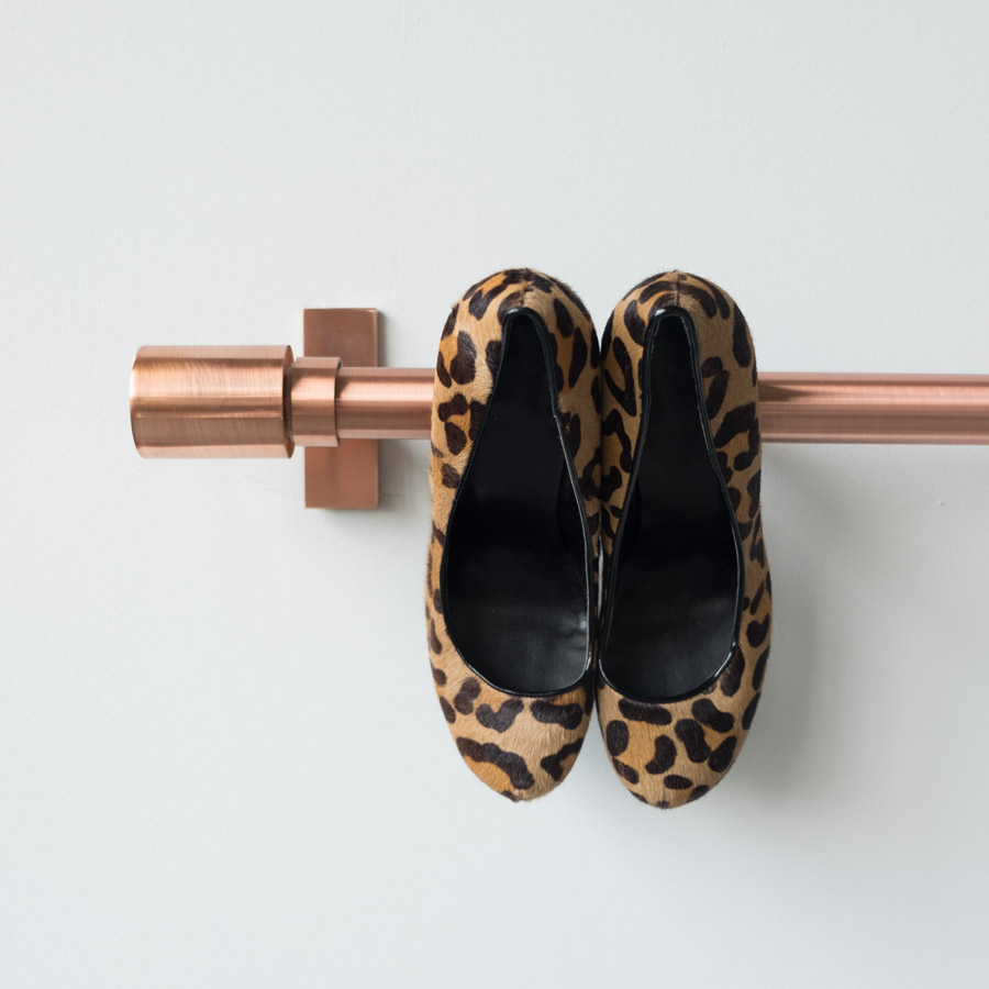 4. The perfect home for your shoes. Lots of shoes and nowhere to store them? Give them a new home that is pretty enough to be outside of the closet by using a luxe curtain rod.