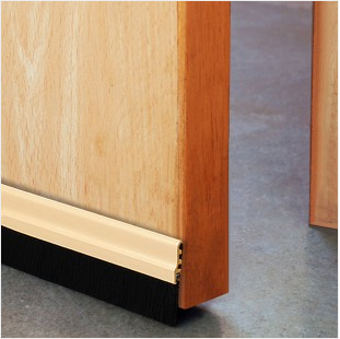 Door shoes and door sweeps are both attached to the bottom of a door to seal the gap between the door and the floor.door sweep is a wooden or metal strip fitted with a nylon blade that attaches to the outside of the door. It is generally very durable, but they can be difficult to install and may require planing the bottom of the door.