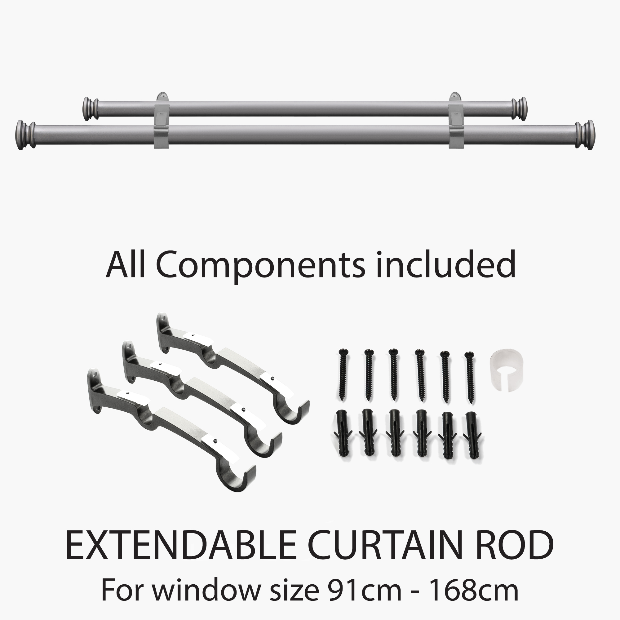 6. 132-366 CMS BASICS END CAP EXTENDABLE CURTAIN ROD SATIN SILVER 25MM - 2N