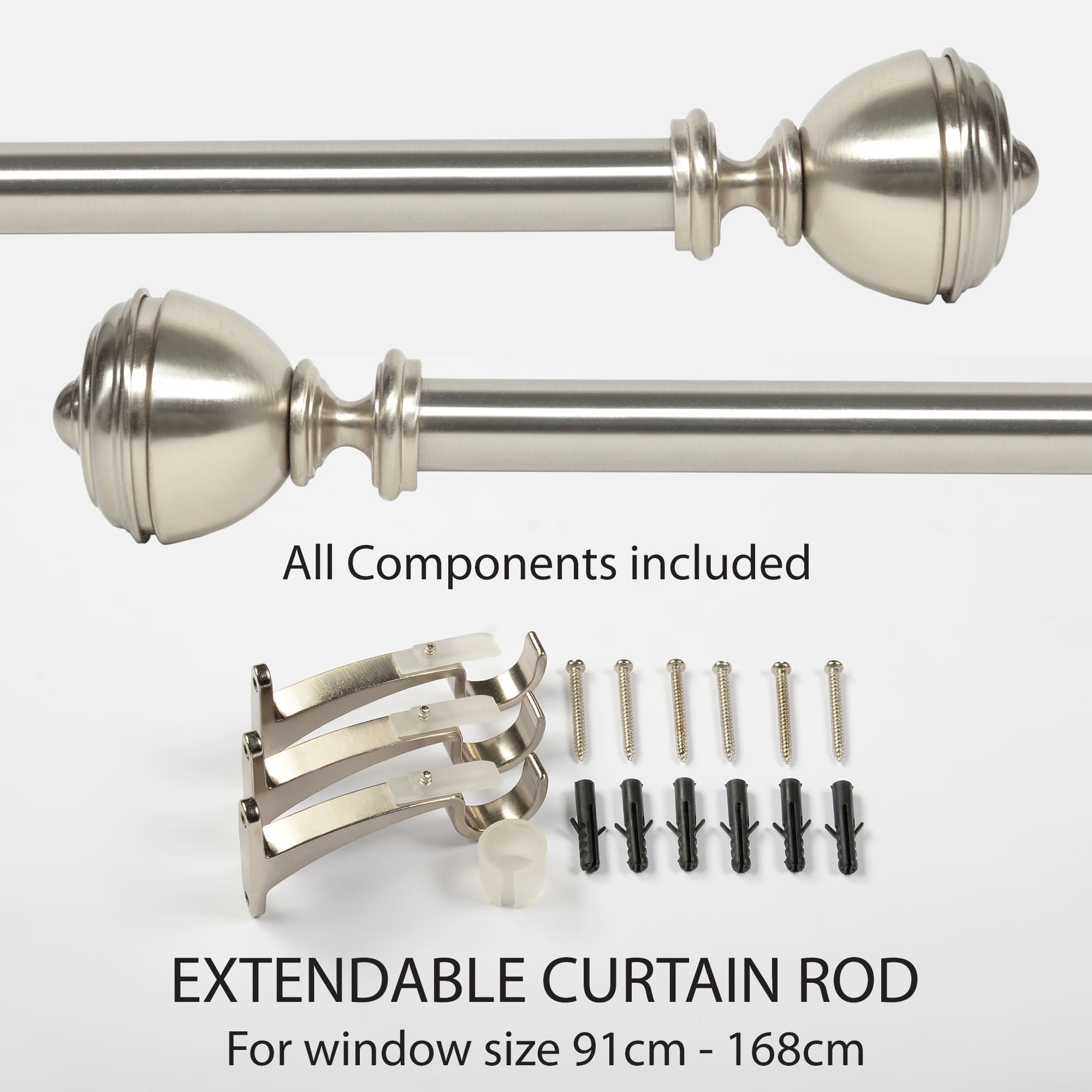 6. 92-168 cms Basics Ball Extendable Curtain Rod Satin Silver 25mm