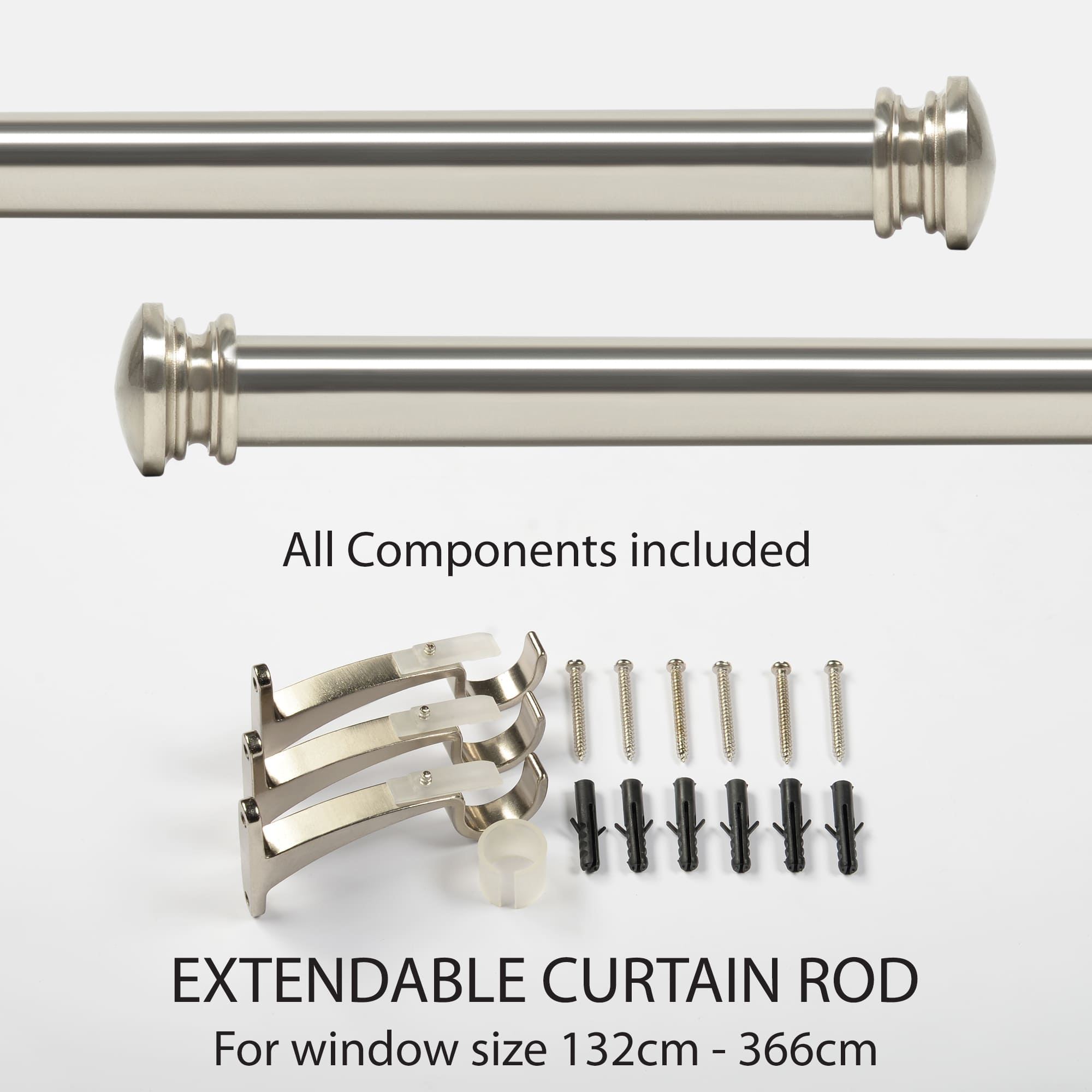 8. 132-366 cms End Cap 25mm Extendable Curtain Rod Satin Silver