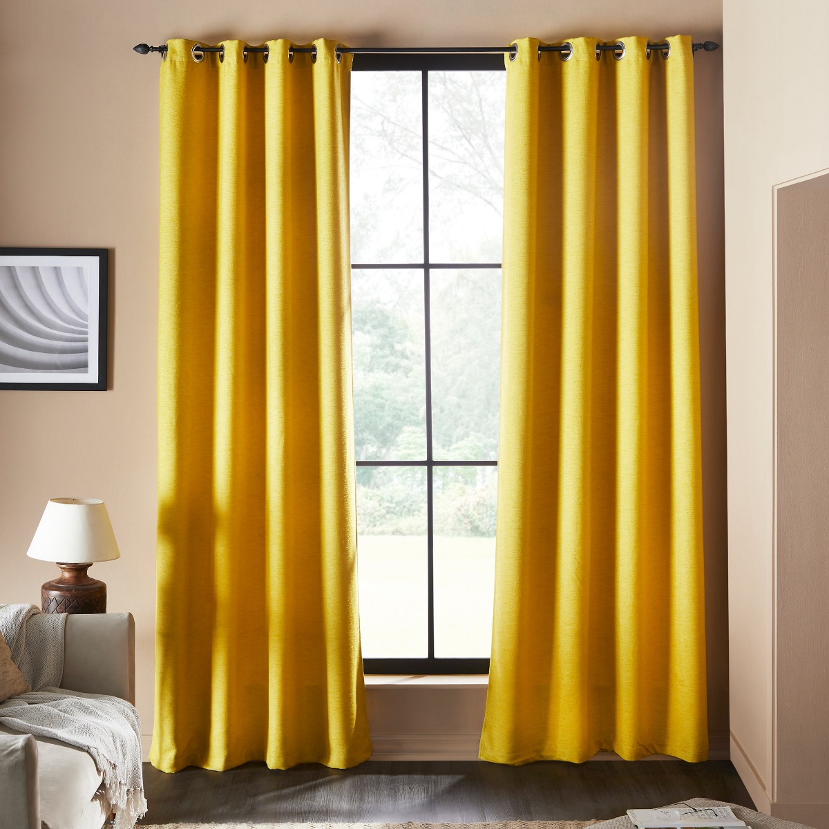 7. Deco Window 2N Semi-Blackout Curtains for Windows & Doors 9 Feet Long 245 GSM Room Darkening Thermal Insulated Soft Touch Polyester Curtain with SS Grommets (52" W X 108" H, Mineral Yellow)