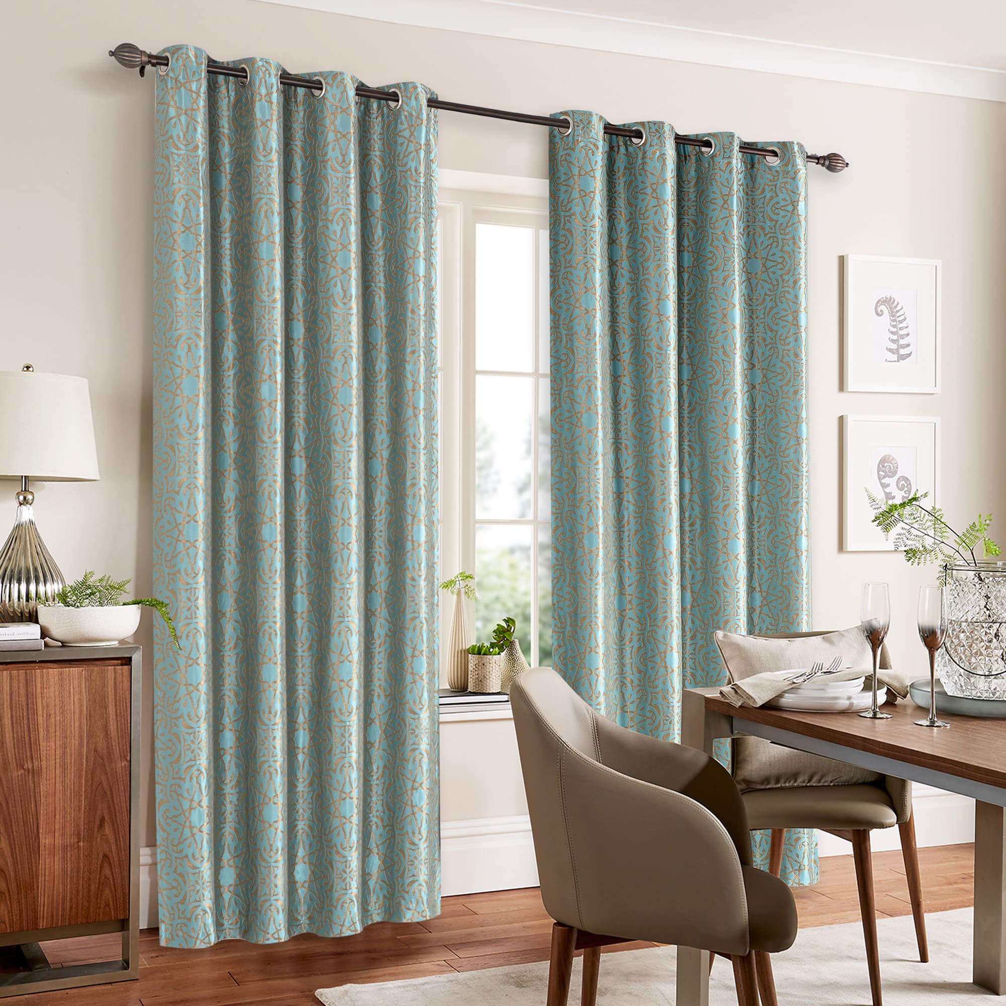 3. Curtain Eyelet 52" x 108" Trellis Star Process Blue S/2
