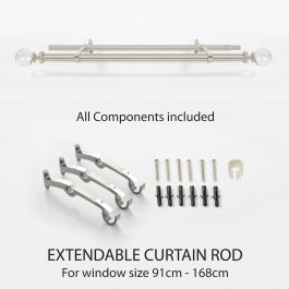 Ball Double Curtain Rod Satin Silver 92-168 cms