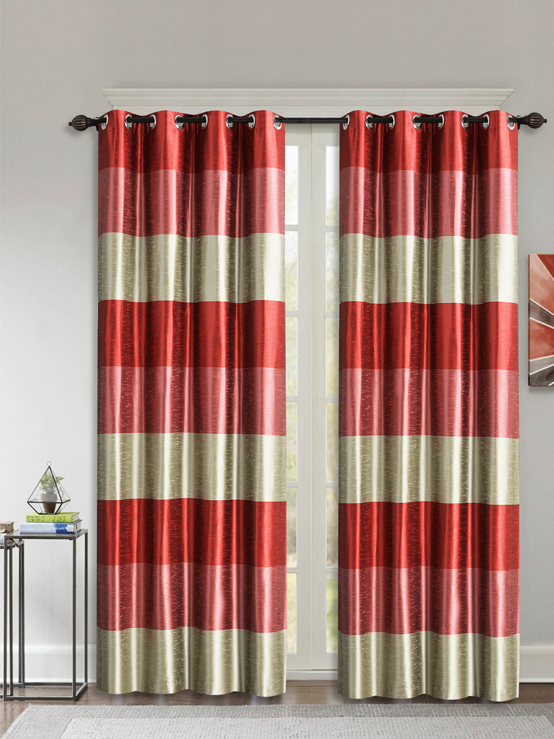 9. Silk Route Blackout Eyelet Polyester Door Curtain - 228 cms, Red,2 Piece