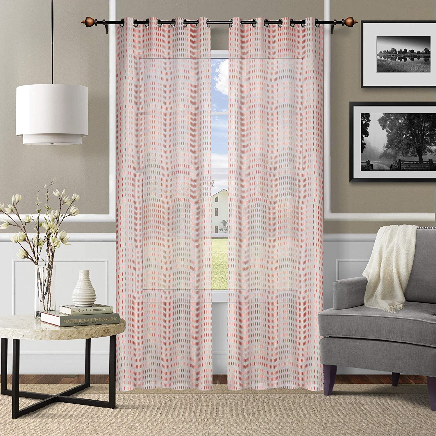 2. Sheer Eyelet Polyester Door Curtain-110 cm x 225 cm,Red, 2N