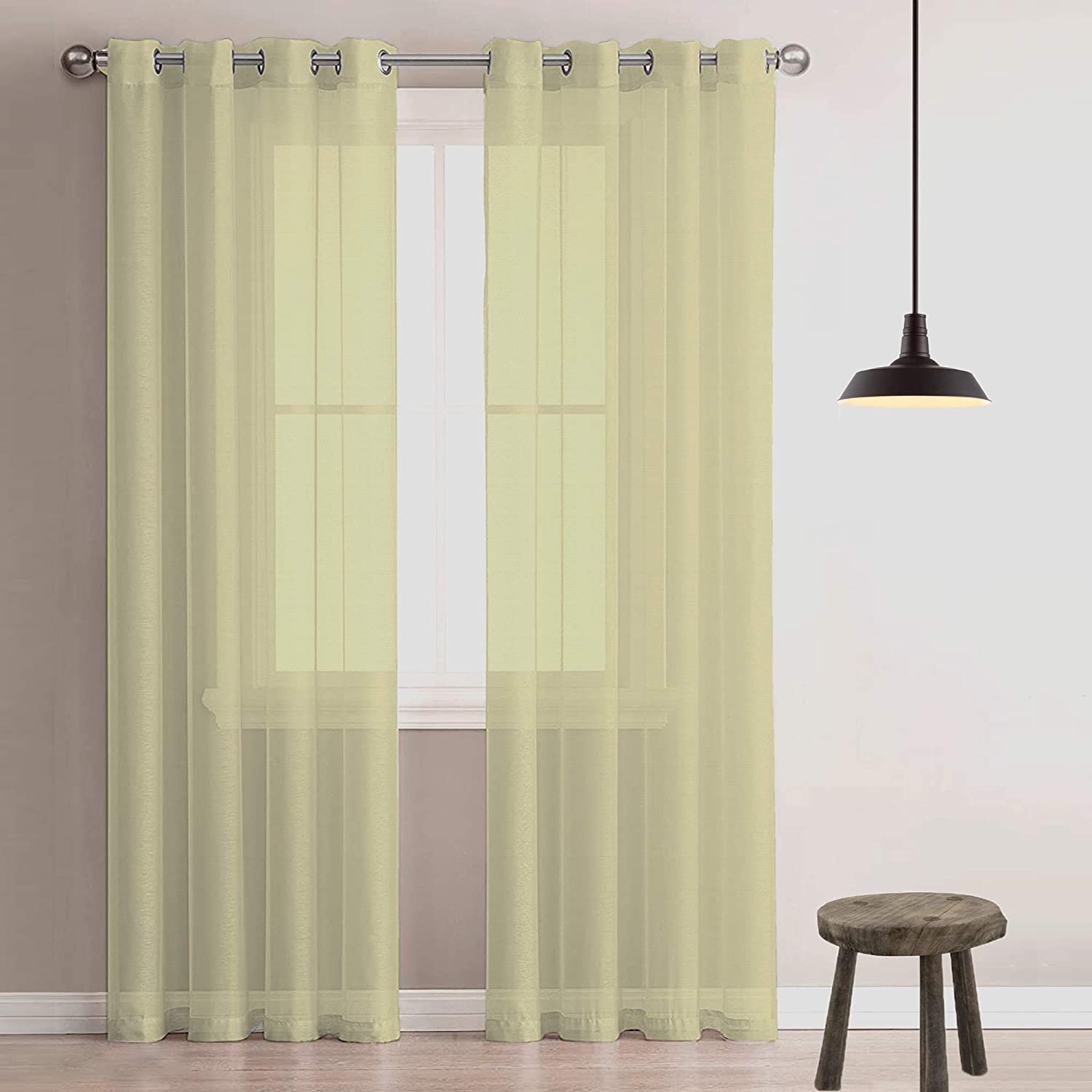 12. Sheer Eyelet Polyester Window Curtain(Set of 2) - 5ft (60 inch), Ivory